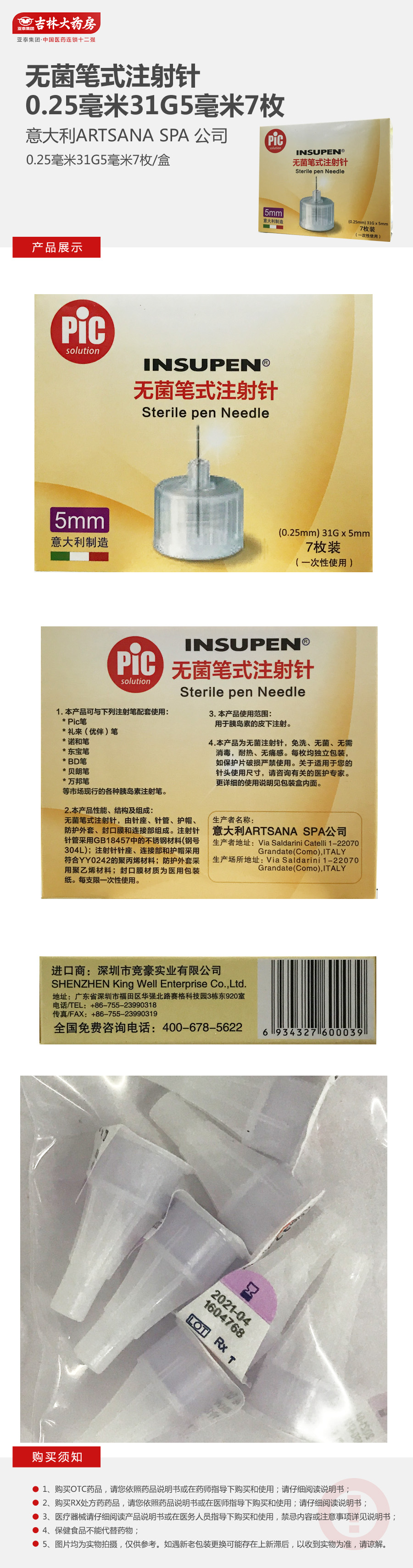 无菌笔式注射针 0.25毫米31G*5毫米*7枚 配合胰岛素笔使用