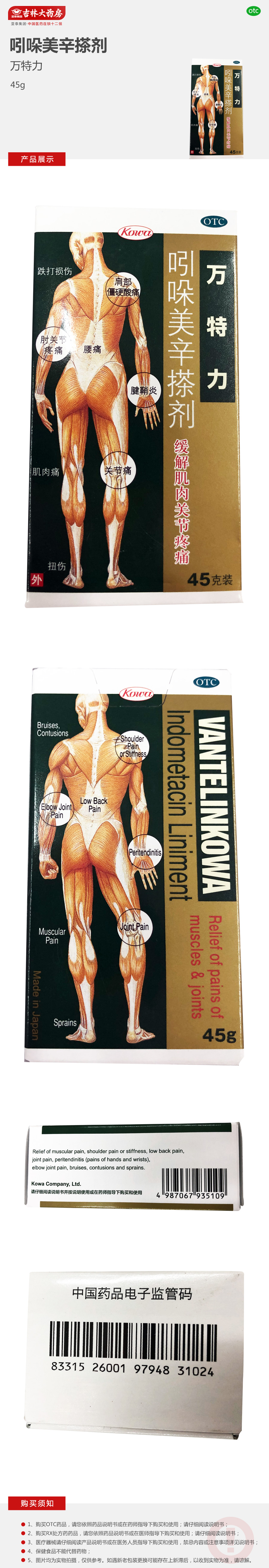 吲哚美辛搽剂(万特力) 45克 腰痛、关节痛、腱鞘炎