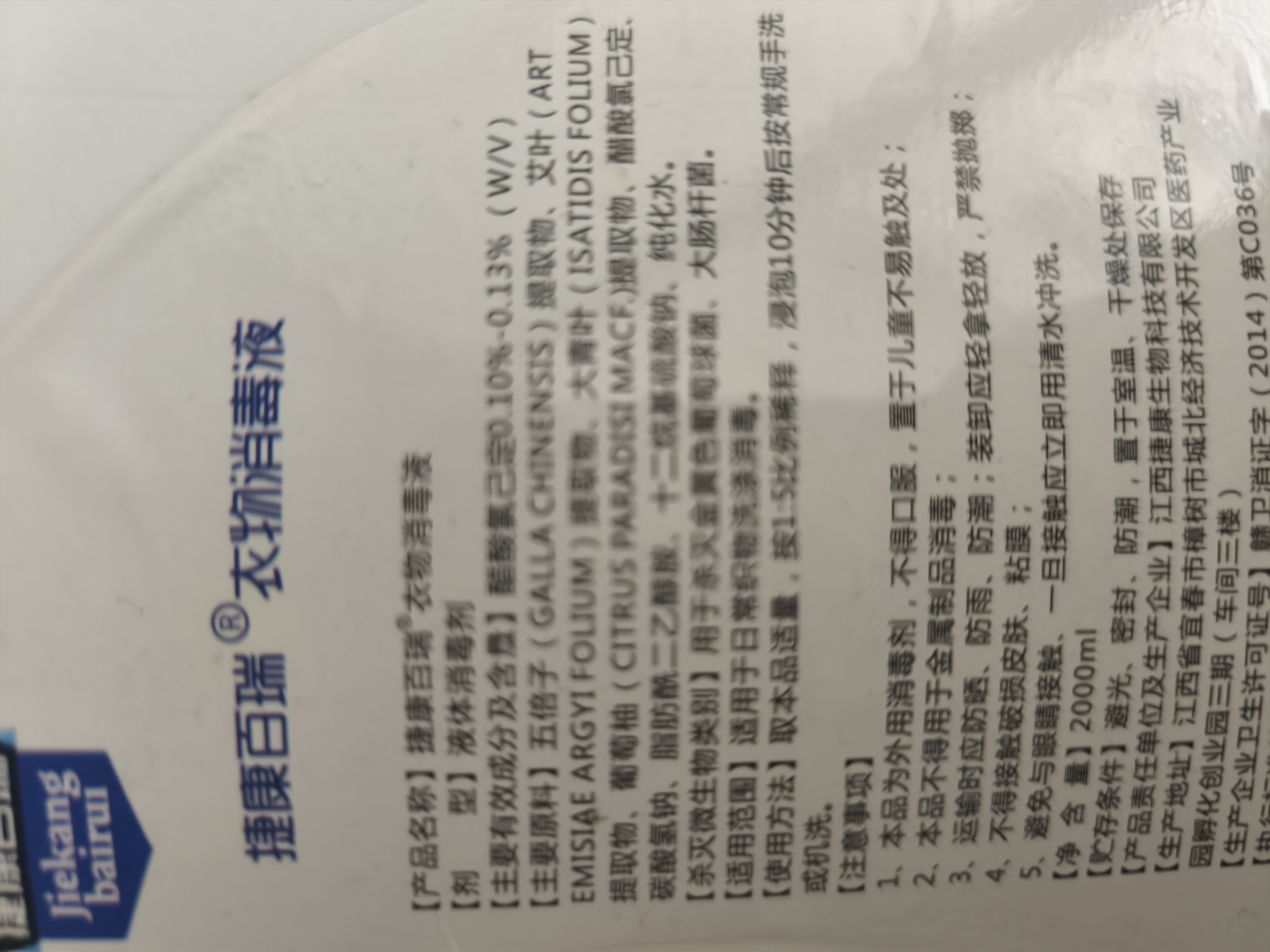 捷康百瑞衣物消毒液