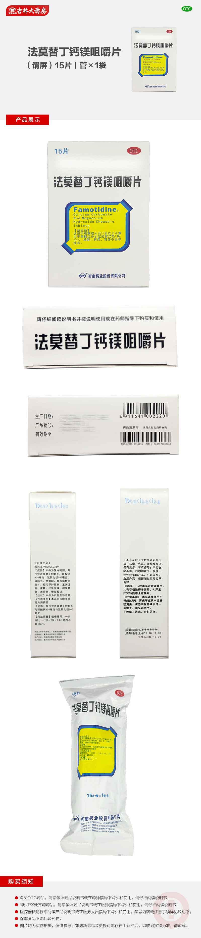 法莫替丁钙镁咀嚼片(谓屏)