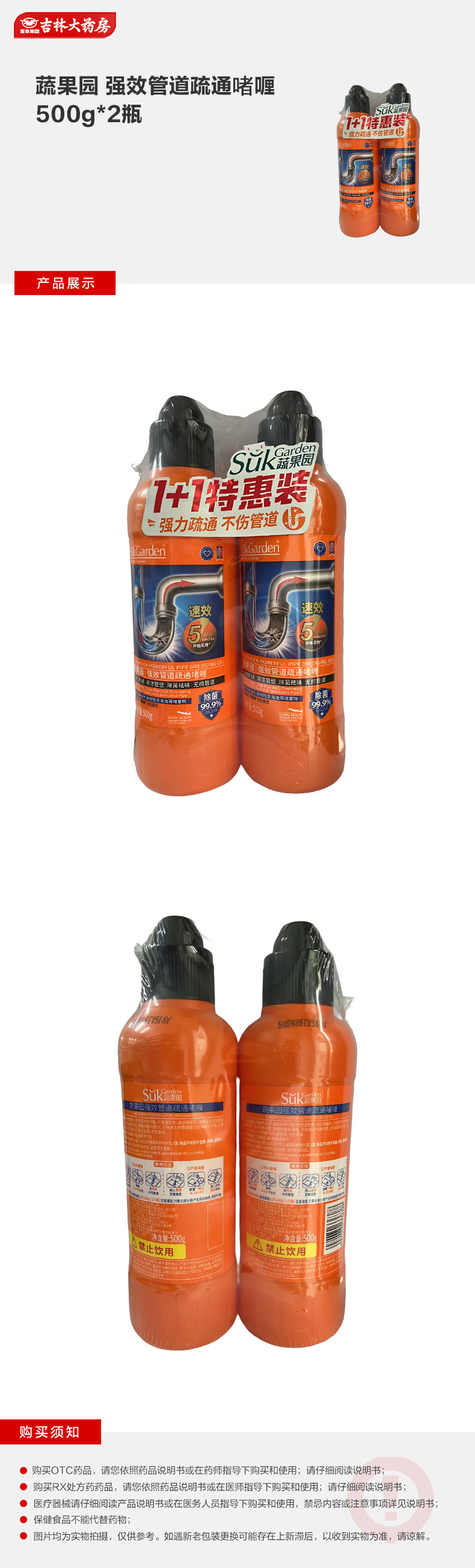 蔬果园 强效管道疏通啫喱